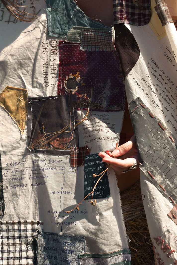 This is a personal project I made in 2019. I made a coat where I drew, wrote, painted and sewed all type of knowledge, referents and exercises I did during that year. This sketch-coat it would represent like a big diary of my transition and steps I had to do to arrive where a I am now. Everything I learned, it's reflected there and you can touch it.